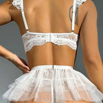 Odkryj bieliznę, która łączy zmysłowość i elegancję. Najwyższej jakości koronka, subtelne paseczki i lekka tiulowa spódniczka tworzą wyjątkową kompozycję, która podkreśla Twoje kobiece krągłości i dodaje pewności siebie.