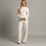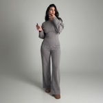 Dlaczego pokochasz ten zestaw: ✓ Wysokiej jakości materiał – wygląda elegancko i jest przyjemny w dotyku. ✓ Pochlebny krój, który elegancko podkreśla twoją kobiecą sylwetkę. ✓ Ponadczasowy design, który będziesz chciała nosić wielokrotnie – od brunchu po randkę. ✓ Dostępny w trzech eleganckich kolorach: kremowy, szary i czarny – idealny do twojej garderoby.