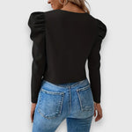 Detal bufiaste rękawy – Kobiecy i nowoczesny wygląd.