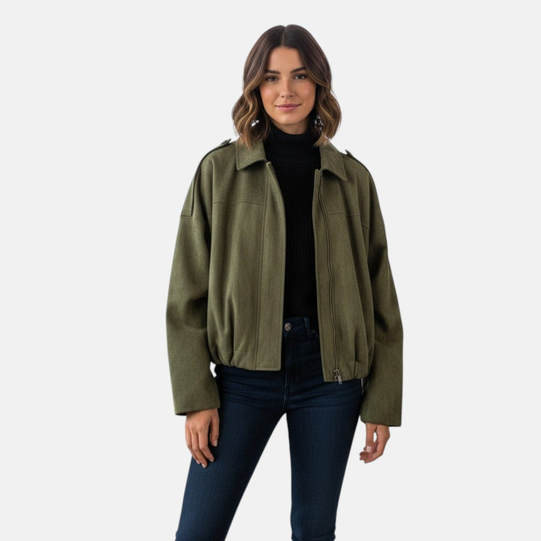 Ta elegancka kurtka pilota z rękawami w kształcie nietoperza łączy komfort i styl w doskonały sposób. Miękki materiał zamszowy oferuje odrobinę luksusu, podczas gdy luźny krój zapewnia swobodny i modny wygląd.