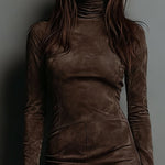 Ta sukienka mini z golfem, inspirowana stylem vintage, łączy nowoczesny styl z ponadczasowym urokiem. Dopasowana sylwetka i miękki, luksusowy materiał suede tworzą korzystny wygląd, podczas gdy wysoki golf dodaje elegancji i ciepła. Idealna na casualowe wyjścia lub szykowny wieczorny look, ta sukienka oferuje zarówno komfort, jak i styl w jednym łatwym do noszenia projekcie.