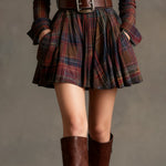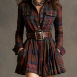 Ta stylowa czerwona i brązowa kratka mini sukienka oferuje idealne połączenie vintage'owego uroku i nowoczesnego stylu. Z klasycznym kołnierzykiem i podkreśloną talią, ta sukienka tworzy kobiecą sylwetkę, zapewniając jednocześnie komfort i wszechstronność.