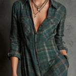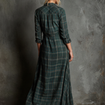 Izabela - Klasyczna Zielona Koszulowa Sukienka w Kratę