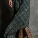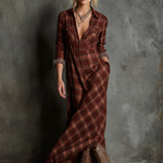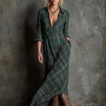 Ta sukienka koszulowa o pełnej długości charakteryzuje się klasycznym wzorem w kratę, zapięciem na guziki z przodu oraz długimi rękawami z mankietami na złożenie. Dopasowany krój w talii dodaje struktury, podczas gdy zwiewna spódnica zapewnia swobodę ruchów. Dwie kieszenie na piersi i kieszenie boczne łączą praktyczność z rustykalnym urokiem, czyniąc ją stylowym wyborem na codzienne dni lub warstwowe stylizacje.