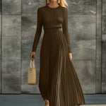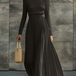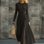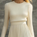 Sukienka Charlotte łączy miękkość delikatnych dzianin z eleganckim ruchem satynowych fałd, tworząc sylwetkę, która jest zarówno wyrafinowana, jak i pięknie swobodna. Dopasowany, prążkowany górny element oferuje delikatną strukturę, podczas gdy zwiewna, fałdowana spódnica dodaje odrobinę ponadczasowej elegancji — co czyni ją idealnym wyborem na dzienne wyjścia, wyrafinowane kolacje lub chwile, gdy po prostu chcesz wyglądać bezwysiłkowo i schludnie.