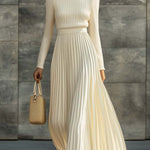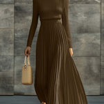 • Zwiewna, fałdowana spódnica — miękki ruch, który wprowadza elegancki, kobiecy akcent.