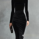 Wiktoria - Czarna Aksamitna Sukienka Dopasowana
