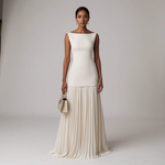 Wejdź w świat wyrafinowanej elegancji z Klara, arcydziełem stonowanej finezji. Elegancki gorset, który podkreśla sylwetkę, przechodzi w piękną, plisowaną spódnicę o pełnej długości, tworząc wdzięczną sylwetkę, która zachwyca z każdej perspektywy. Dzięki bezrękawowemu krojowi i strukturalnemu szyciu, to idealny wybór na wieczory, formalne okazje lub wydarzenia dzienne.