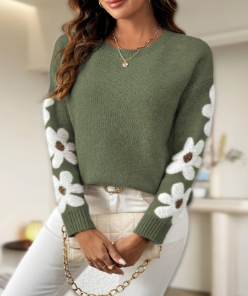 Elwira – Miękki Sweter z Kwiatowym Wzorem