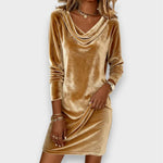 Ta wyjątkowa sukienka o miękkiej, luksusowej fakturze została stworzona, by zapewnić Ci maksymalny komfort i wyjątkowy wygląd jednocześnie. Delikatnie opadający dekolt nadaje kreacji subtelnego uroku, a dopasowany krój pięknie podkreśla sylwetkę. Idealna na kolacje, przyjęcia czy wieczorne wyjścia – sprawia, że każda chwila staje się bardziej stylowa.
