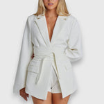 Podkreślona talia – dopasowany krój wprowadza elegancję w każdym looku Wszechstronny – idealny do biura, na kolacje lub jako elegancki kontrast do dżinsów Elegancki pasek – podkreśla sylwetkę i nadaje głębi żakietowi