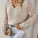 Sweter Wysokiej Jakości – Wykonany z luksusowej przędzy, oferuje miękkie i przytulne uczucie, które trwa. Pochlebny Design V-Neck – Elegancki dekolt w kształcie litery V podkreśla Twoją sylwetkę, dodając szyku każdemu strojowi. Przytulny i Lekki na Jesień – Doskonale wyważony na jesienną pogodę, oferuje ciepło bez nadmiernej wagi. Wszechstronny Styl – Idealny na codzienne wyjścia lub bardziej formalne okazje, łatwo dopasowuje się do każdej garderoby.