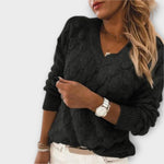 ✔️ Wszechstronna elegancja: Idealny na każdą okazję, od spotkań nieformalnych po formalne chwile. ✔️ Korzystny krój: Dekolt w serek i luźna sylwetka oferują nowoczesny i stylowy wygląd. ✔️ Wygoda przez cały dzień: Miękki materiał dzianinowy zapewnia przyjemne ciepło i uczucie otulającego komfortu. ✔️ Łatwy do zestawienia: Łatwo go połączyć z dżinsami, spódnicami lub eleganckimi spodniami.