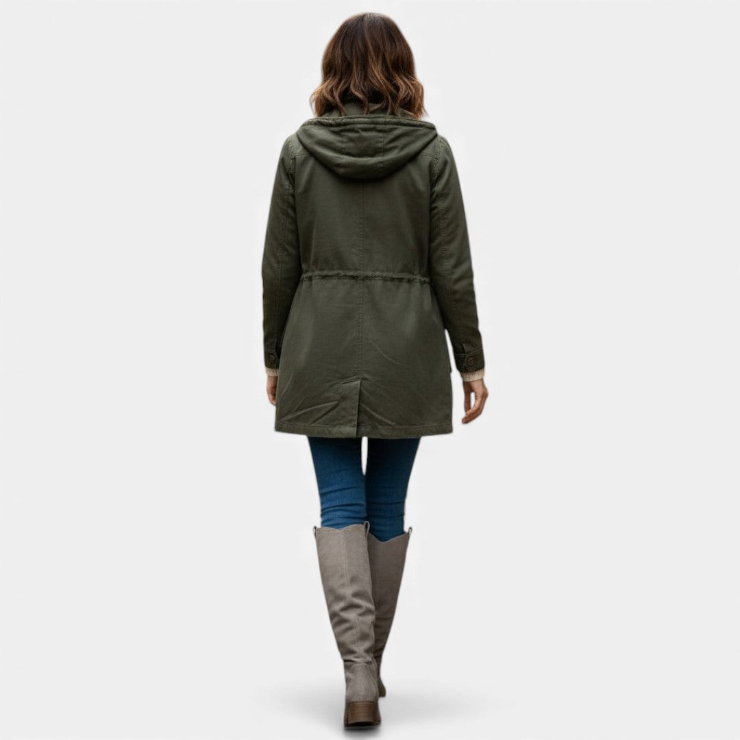 Płaszcz w kratę w odcieniach zieleni wygląda bardzo stylowo i ponadczasowo. Jego klasyczny krój w połączeniu z ciepłym swetrem i dżinsami tworzy idealny, codzienny zestaw na chłodniejsze dni.