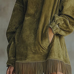 Ta stylowa sukienka z fausz suede łączy ciepło i nowoczesny design dzięki swojemu wygodnemu, oversize'owemu krojowi i frędzlom. Miękka tkanina z fausz suede zapewnia maksymalny komfort, dodając jednocześnie odrobinę wyrafinowania, idealna na casualowe wyjścia lub relaksujące spotkania. Dostępna w bogatych, ziemistych odcieniach, ta sukienka oferuje zarówno styl, jak i funkcjonalność na chłodniejsze miesiące.